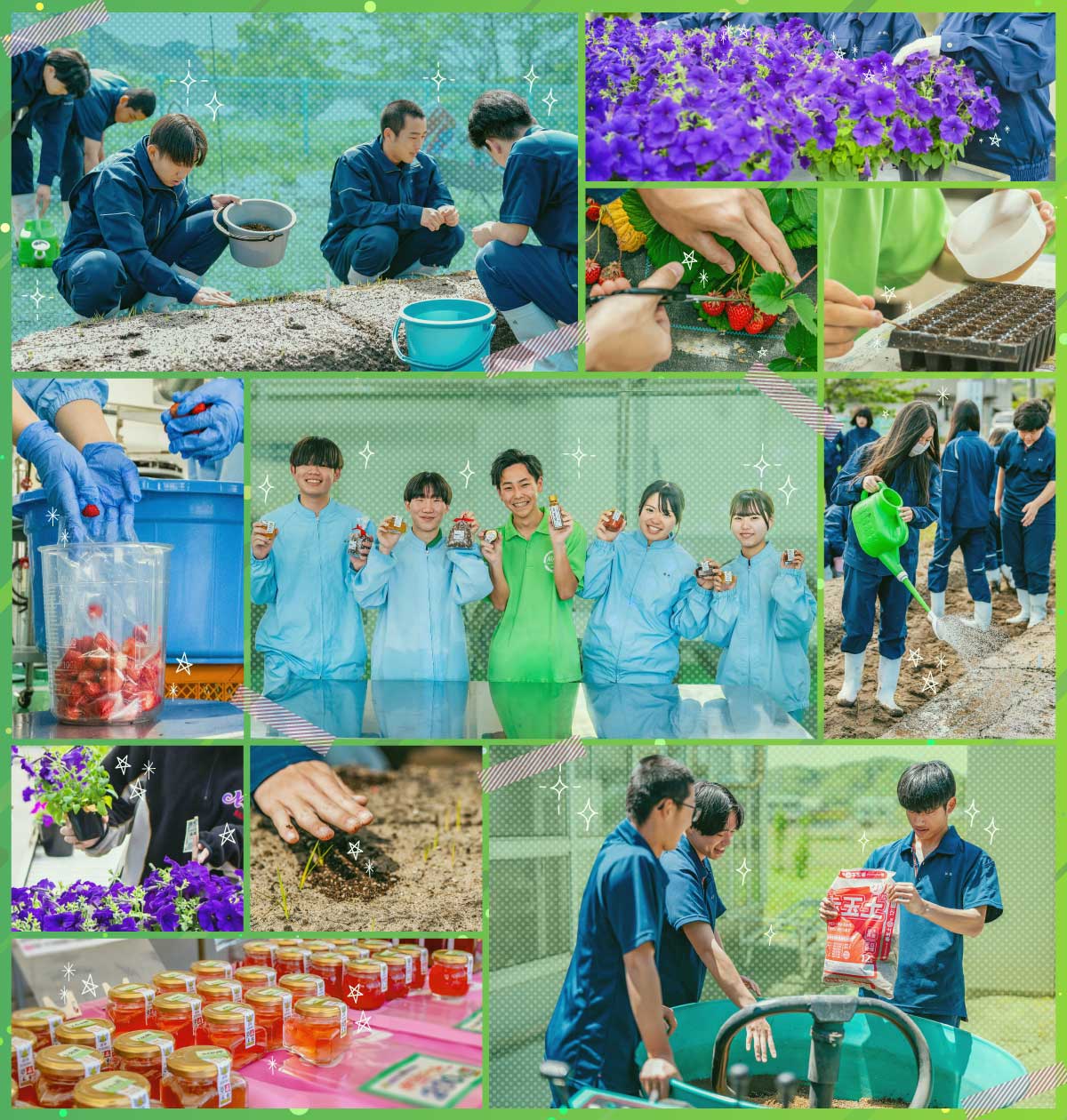 農業の自営や農業関連産業及び食品製造業を目指す人材を育成するため、屋外や食品加工室での実習を通じて、園芸や食品に関する知識や技術を身に付けます。