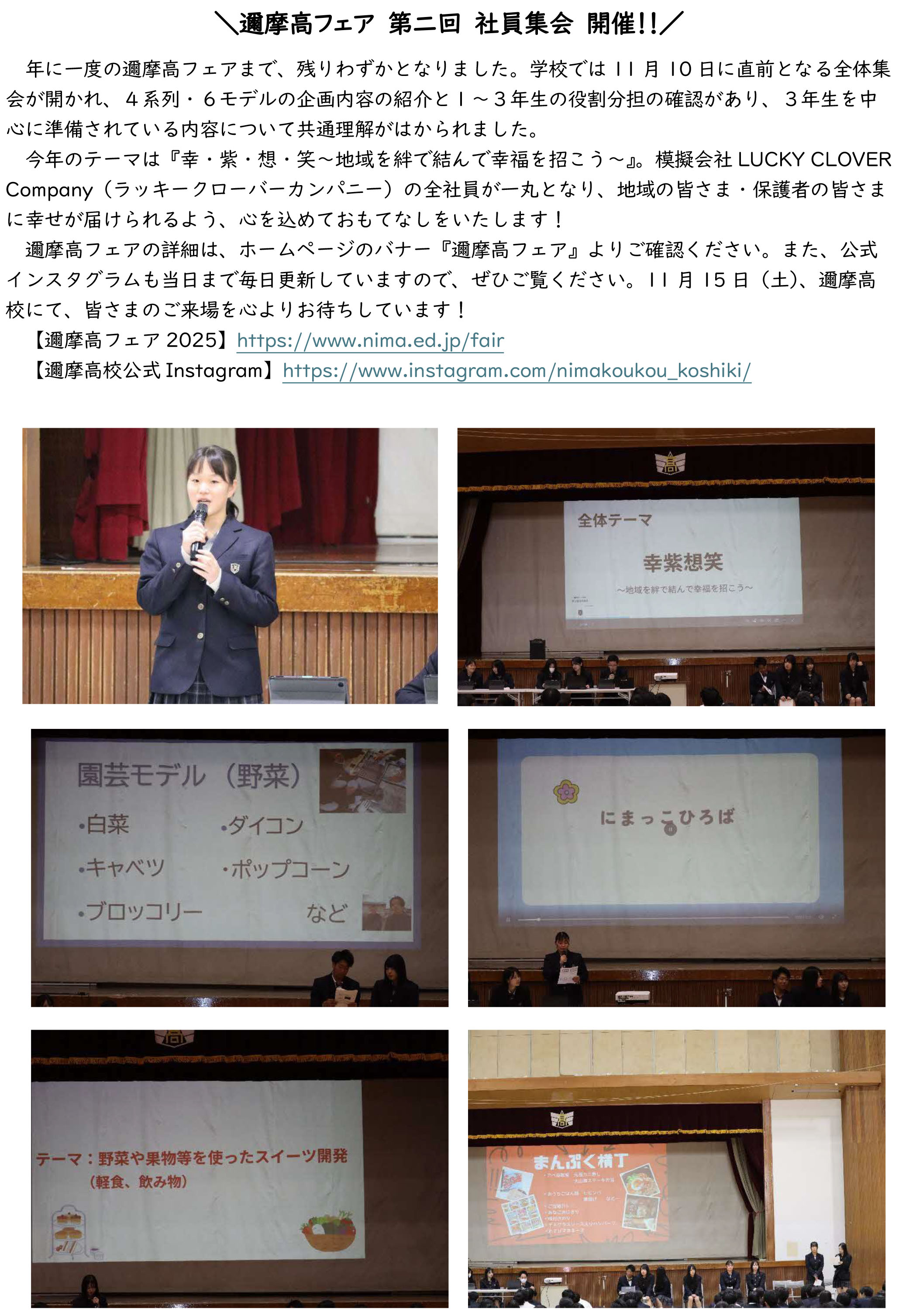 \邇摩高フェア 第二回 社員集会 開催!!/