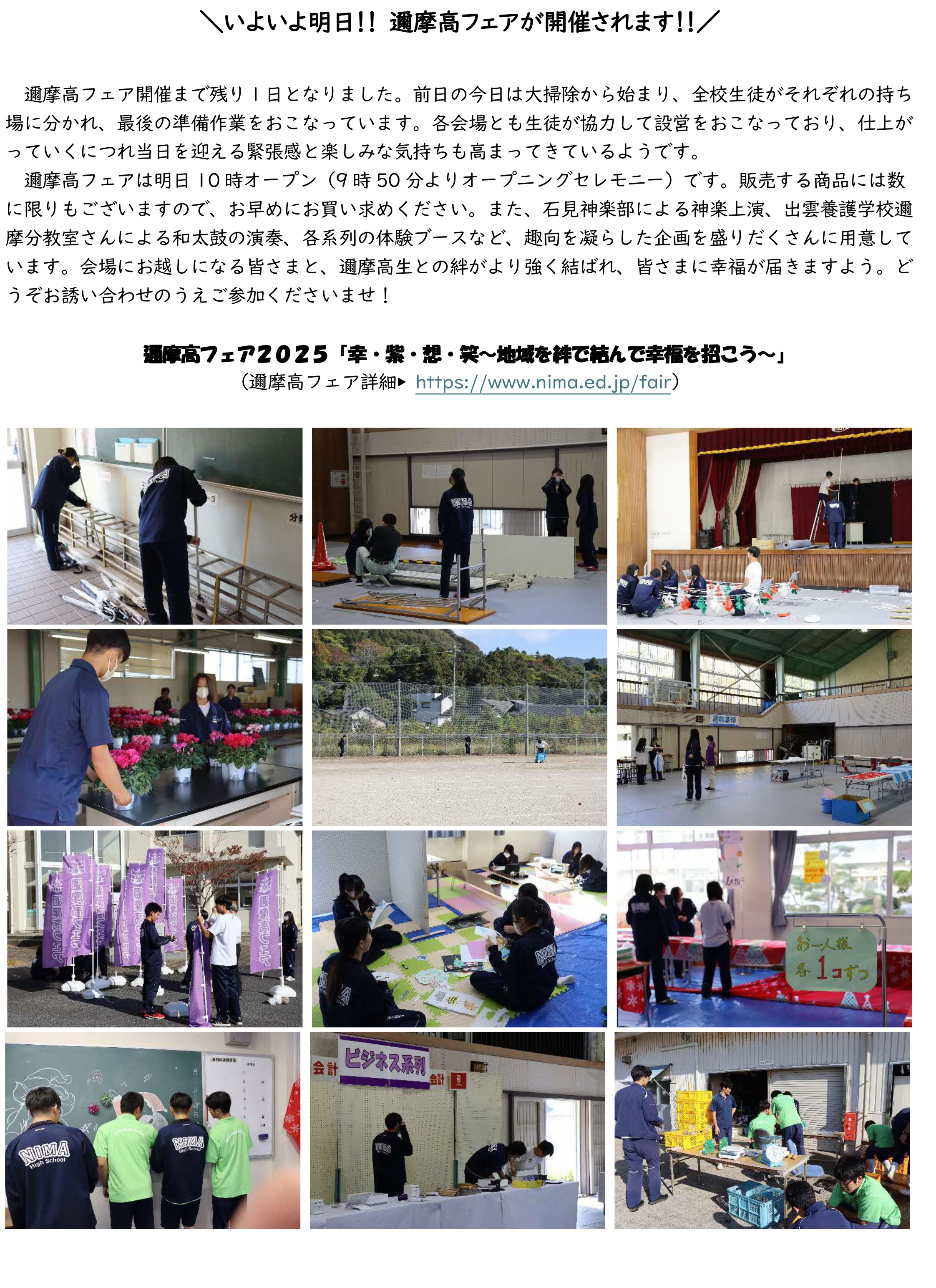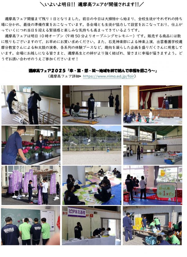 ホーム お知らせ \いよいよ明日!!邇摩高フェアが開催されます!!/ NEWSお知らせ 2025.11.14 イベント情報 \いよいよ明日!!邇摩高フェアが開催されます!!/ PDF版はこちらです。 一覧に戻る