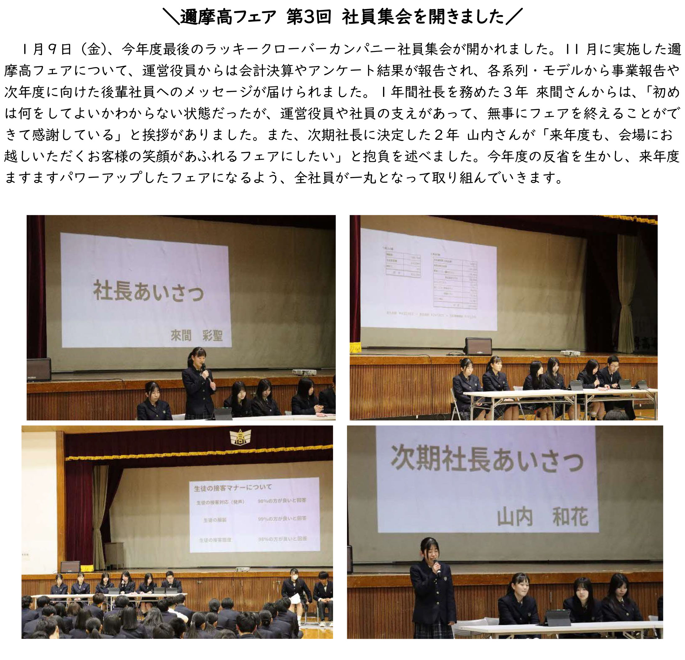 ホーム お知らせ \邇摩高フェア 第3回 社員集会を開きました/ NEWSお知らせ 2026.01.13 イベント情報 \邇摩高フェア 第3回 社員集会を開きました/ PDF版はこちらです。 一覧に戻る