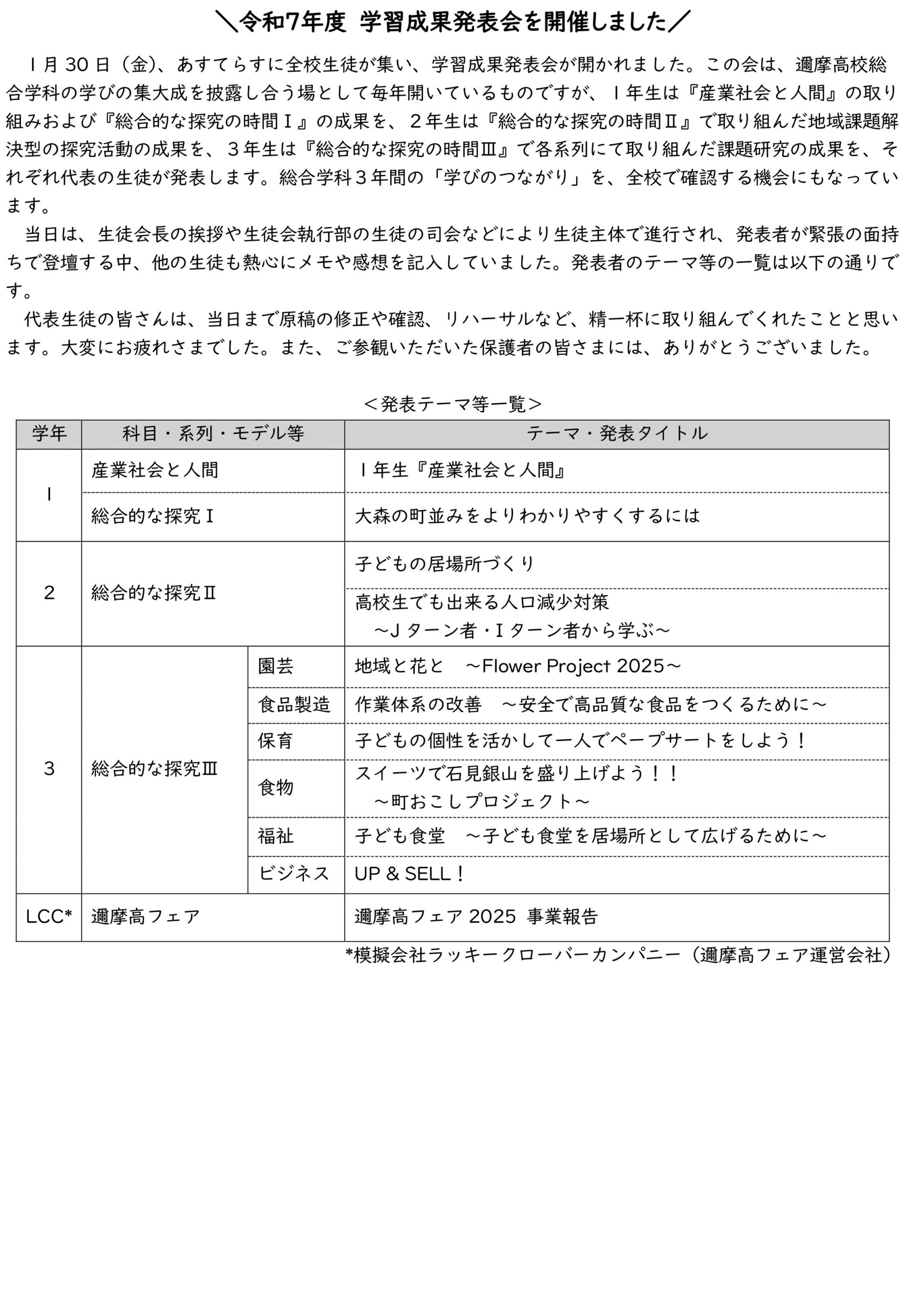 \令和7年度 学習成果発表会を開催しました/