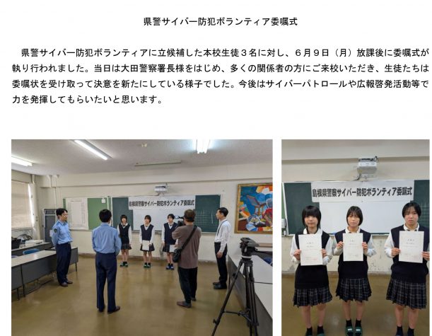 県警サイバー防犯ボランティア委嘱式
