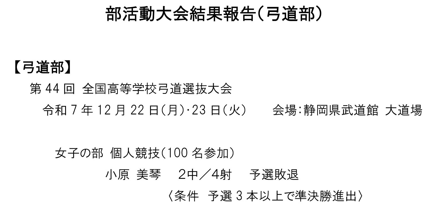 部活動大会結果報告(弓道部)
