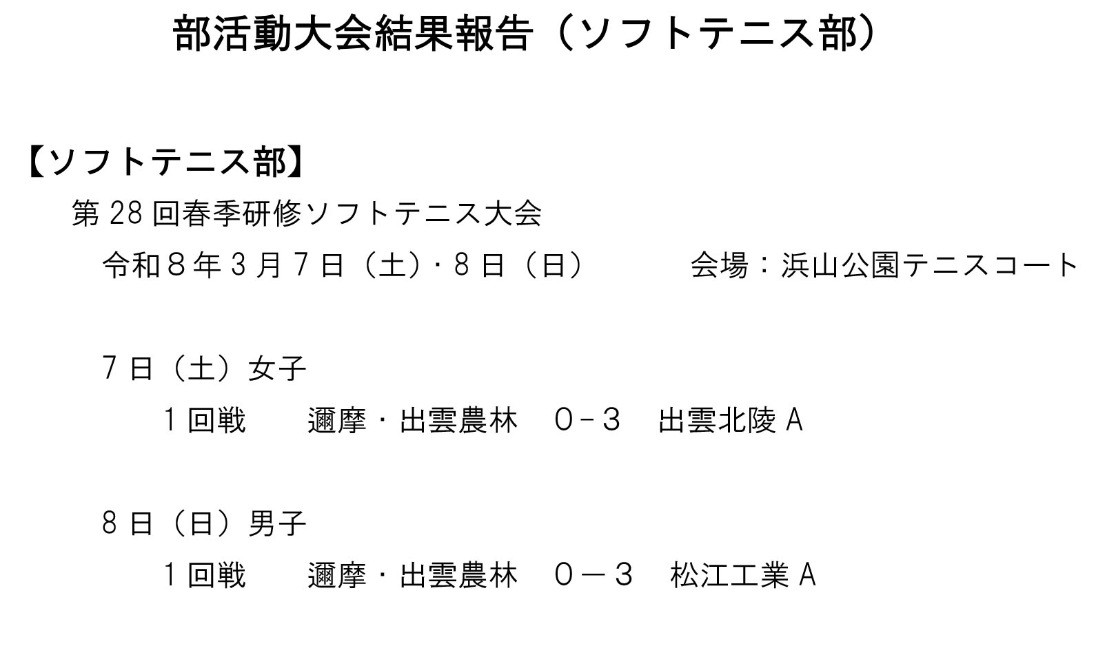 部活動大会結果報告(ソフトテニス部)