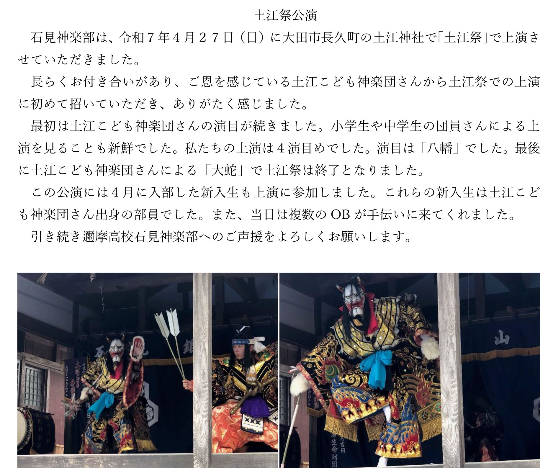 【土江祭公演】 ~石見神楽部~
