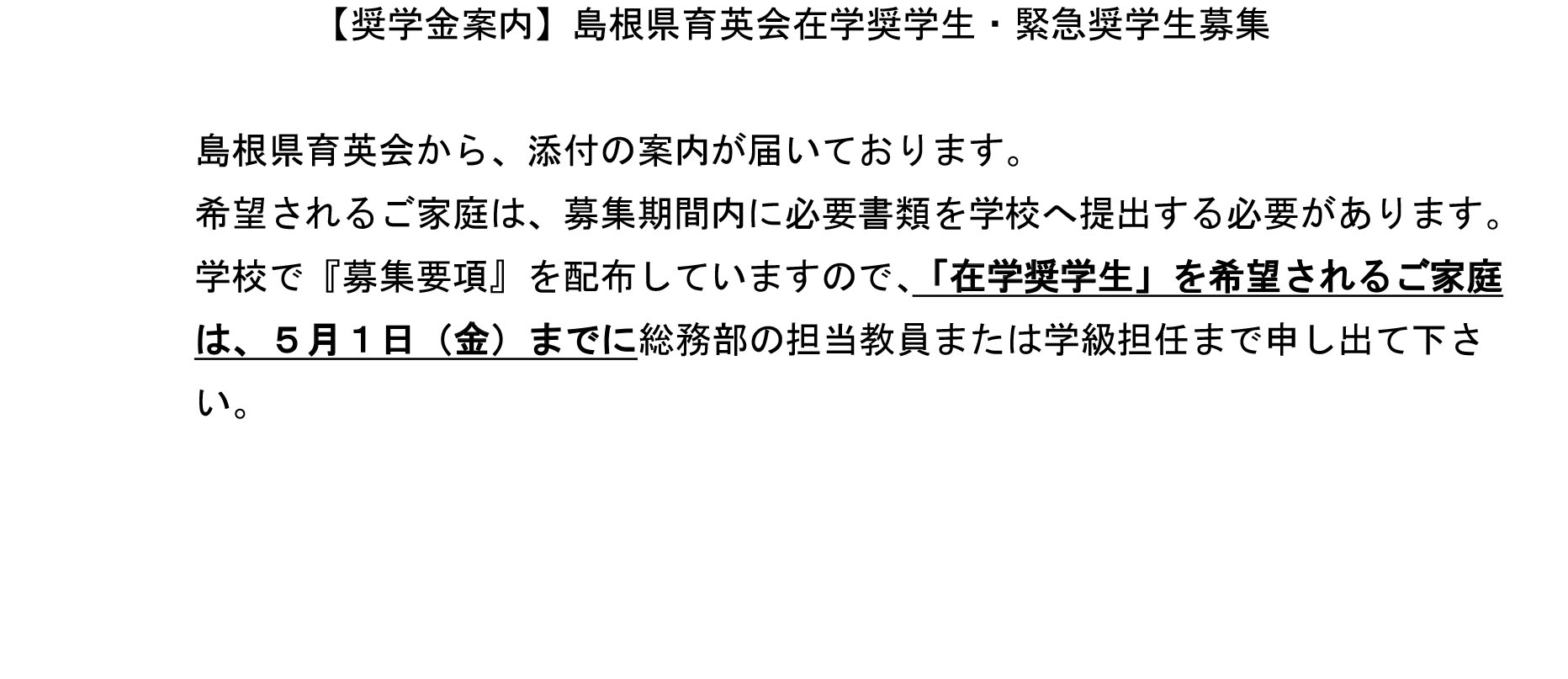【奨学金案内】島根県育英会在学奨学生・緊急奨学生募集