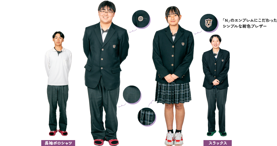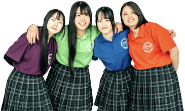 上記の制服以外にも行事等で使用する系列別のポロシャツもあります。【みらいビジネス】は紫、【農業とくらし】は緑、【ひとと福祉】は青、【食とこども】は赤です。