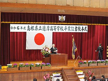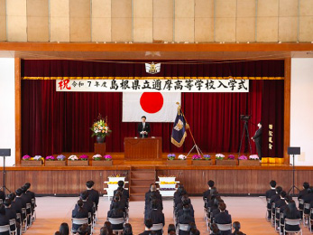 白を基調にしたポロシャツは襟元にグレーの差し色があり、締め付けがなく、他校にはない邇摩高校ならではのデザインです。