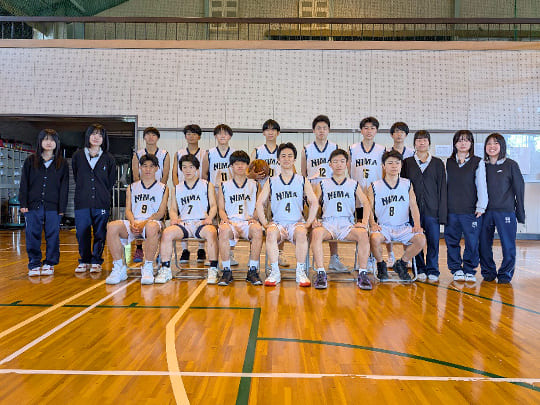 こんにちは、男子バスケットボール部です。男子バスケ部は現在、3年生4人、2年生10人、1年生3人、計17人(選手12人、マネージャー5人)で活動しています。この部活動は、半数以上が高校から始めた初心者です。バスケに興味のある人はぜひ体育館に覗きに来てください。お待ちしています♪