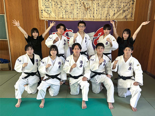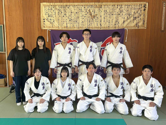 令和5年度は、新型コロナウイルス感染症が5類に移行したことを受け、各種大会や合宿遠征などに参加できるようになりました。県外での合宿や遠征を通して、競技力向上のみならず、他校の部員に習うところも多く、同時に県外の柔道仲間もできました。そんな仲間と、中国大会や全国大会で顔を合わせることも夢見つつ、それぞれが明確な目標に向けて、真剣に取り組んでいます。